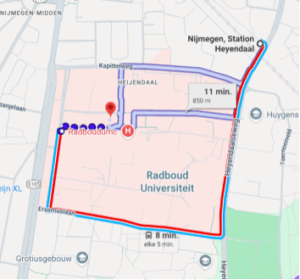 The Experience Center is accessible by public transport. From Nijmegen central station, take the bus to busstop Nijmegen Radboud UMC (bus 10, bus 83 to Venlo or bus 6 to Station Dukenburg) (left map). From Nijmegen Heyendaal the location is a 10 minute walk (right map). Please see your preferred planning app for alternative routes.